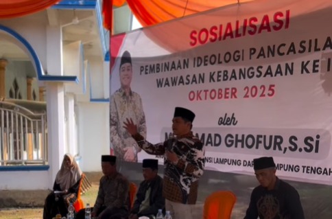 Lampung Tengah – Anggota DPRD Provinsi Lampung, Muhammad Ghofur, melaksanakan kegiatan Sosialisasi Pembinaan Ideologi Pancasila dan Wawasan Kebangsaan (PIPWK) pertama di bulan Oktober 2025. Kegiatan ini menjadi bagian dari upaya berkelanjutan DPRD Lampung dalam memperkuat pemahaman masyarakat terhadap nilai-nilai Pancasila sebagai dasar kehidupan berbangsa dan bernegara.